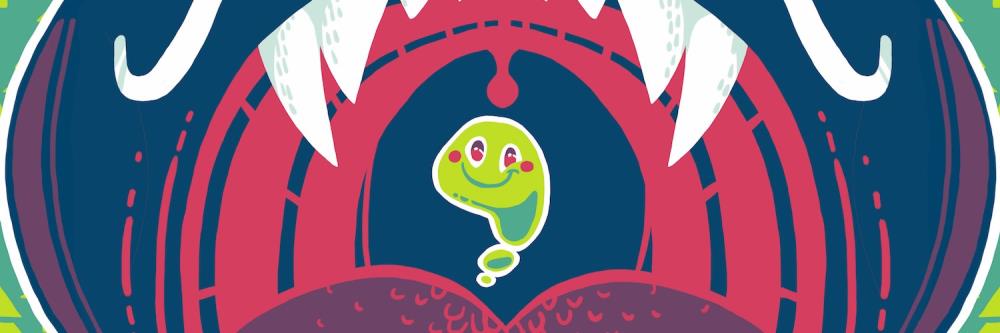 "In Slime-san, as the name may suggest, the player controls a blob of slime who, along with his bird ally, gets swallowed by a giant worm and the goal is to get out. Even with the NPC interactions there is nothing more to the story than that, everything else is mostly just for fun."