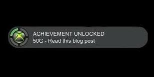 Thanks to the almighty achievment i’ve played and more importantly enjoyed games that I wouldn’t otherwise have given a second look, persevered with games that only a few years earlier would’ve been tucked neatly under my arm on a trip to the trade in store & given me that joyous feeling of nailing one of you’re more difficult tests. So thankyou cheevo’s, you’ve made me a more open minded gamer and a more hardcore gamer, oh, and you make a beautiful sound when you unlock.
