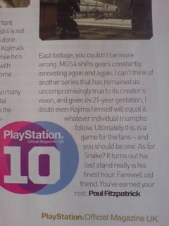 Secondly is PSM3 (http://www.computerandvideogames.com/article.php?id=190199) where they comment on the MGS4 ‘Internet review madness’: