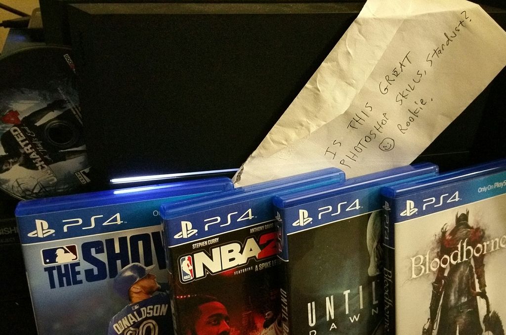 You got me...check out my latest photoshop skills with my imaginary PS4 and all the games I'd said I got and loved previously in my older posts. Rookie busted by the photoshop police.